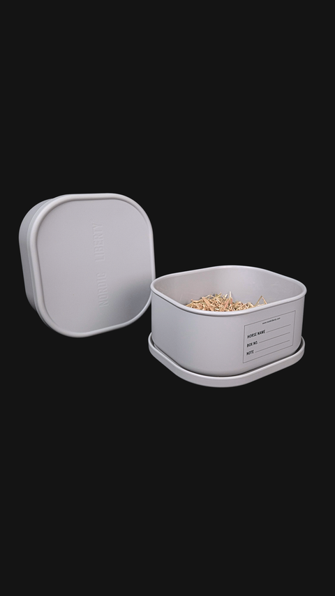 Et holdbart, rengøringsvenligt og funktionelt alternativ til plastbøtter – skabt til ryttere, der vil have kvalitet, æstetik og orden i stalden.