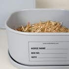 På siden finder du et praktisk skrivefelt, hvor du kan notere hestens navn eller boksnummer, så du altid har styr på, hvem der får hvad.